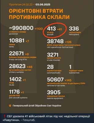 Вражеские ресурсы распространяют информацию от ВСУ о сорок одном уничтоженном российском самолёте во время их операции «Паутина».