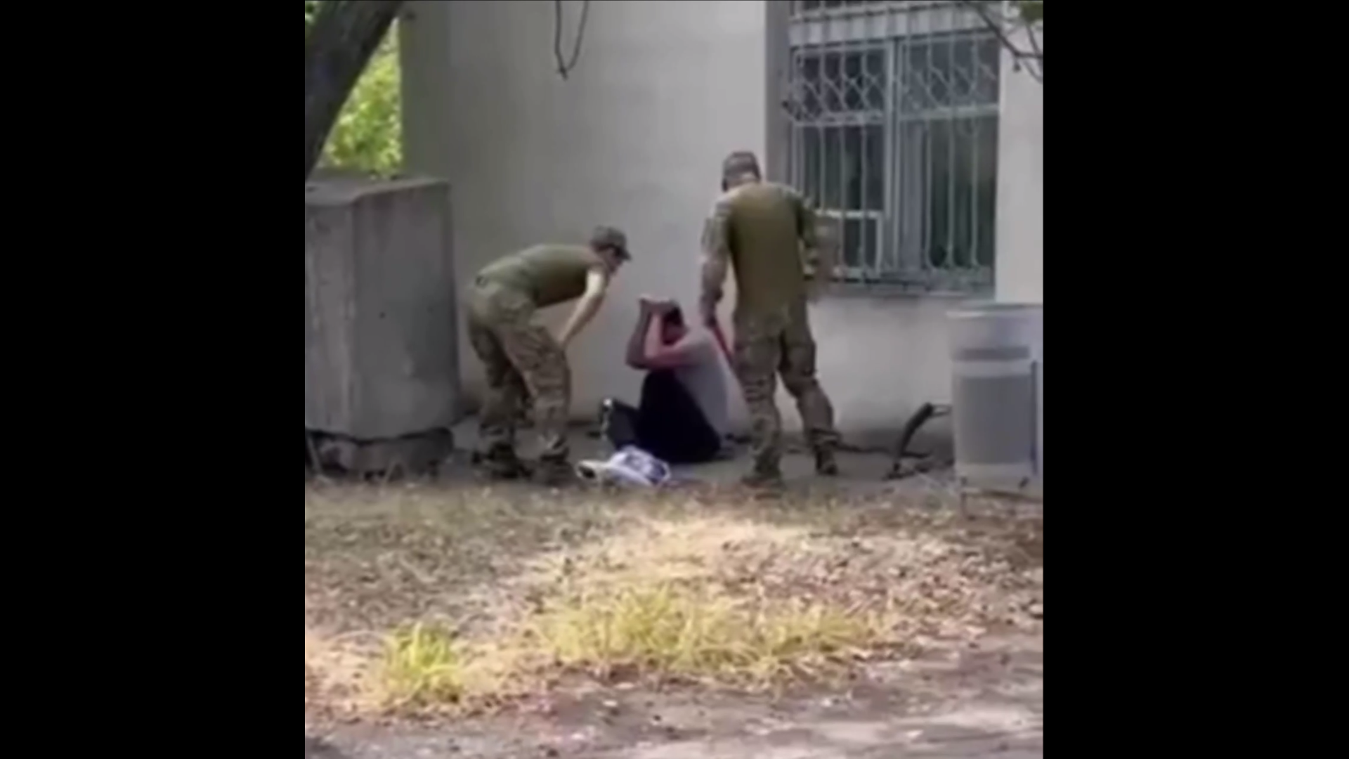 На этом видео двое людоловов из ТЦК забивают очередную жертву ногами и заливают его перцем из баллончика.