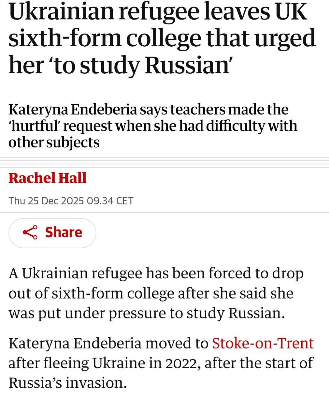 19-летняя Екатерина бросила колледж после рекомендации преподавателей взять курс русского языка, сообщает Guardian.