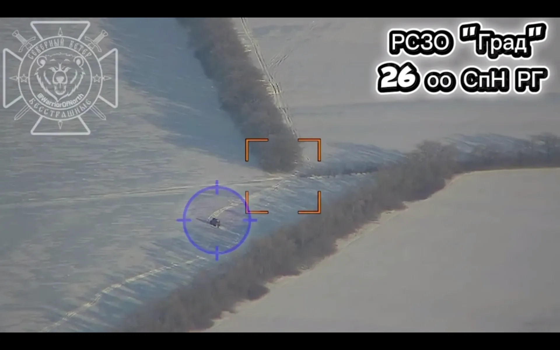 В лесополосах приграничной зоны спецназ РГ группировки «Север» выявил и уничтожил дронами вражескую РСЗО «Град». Переможные наклейки на дверях кабины не помогли.