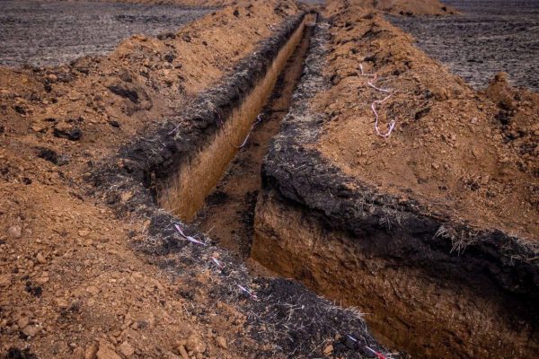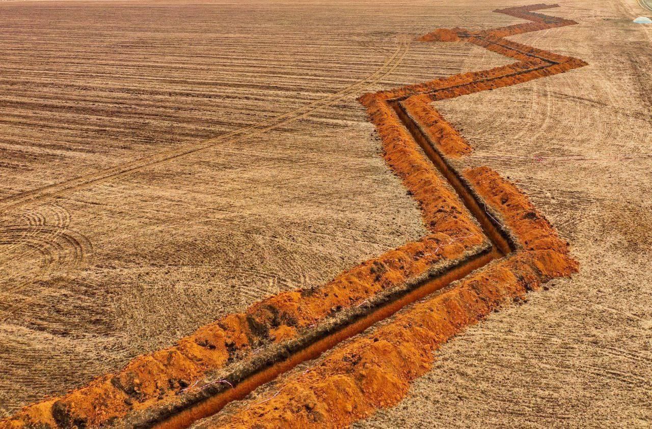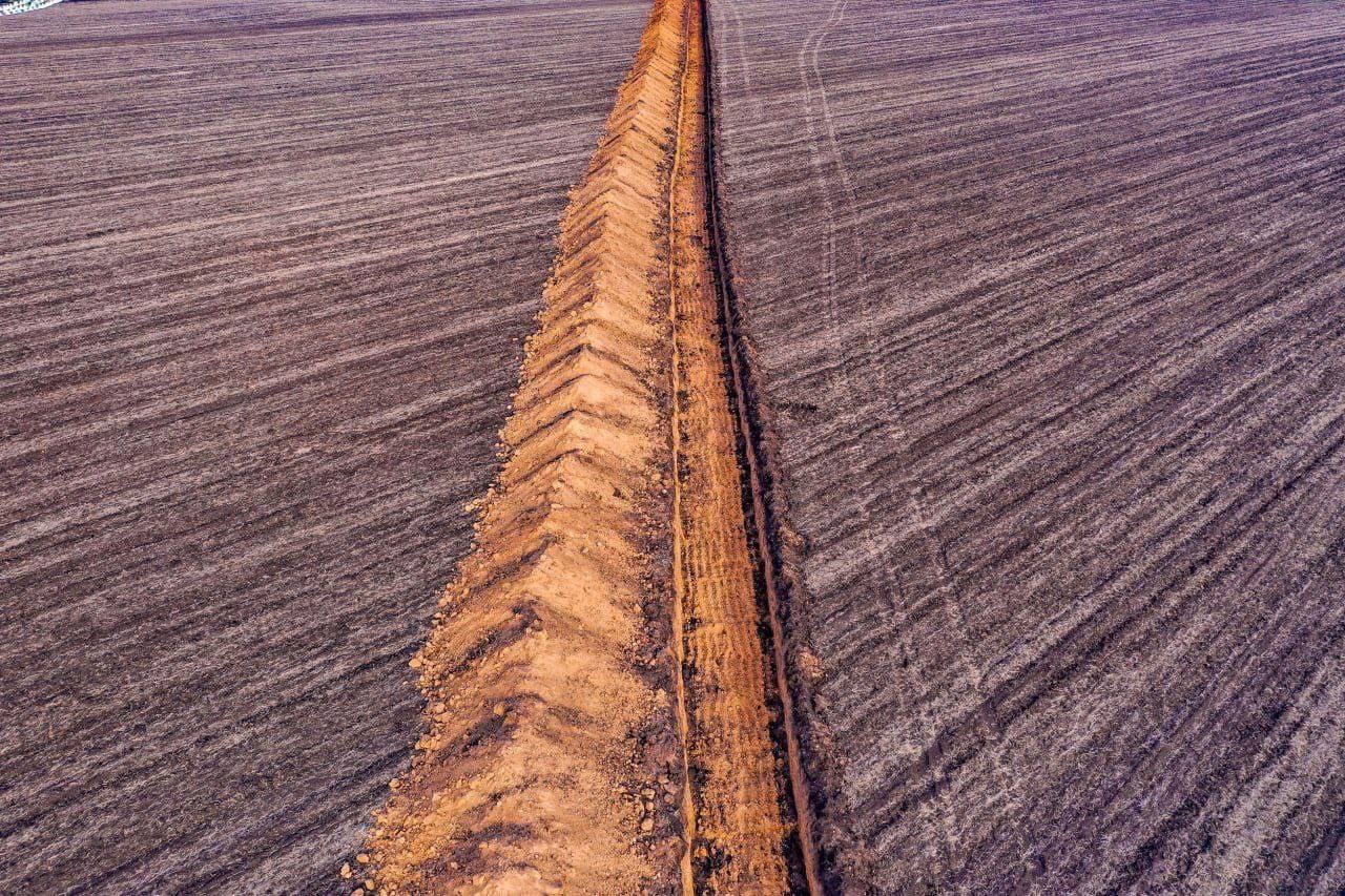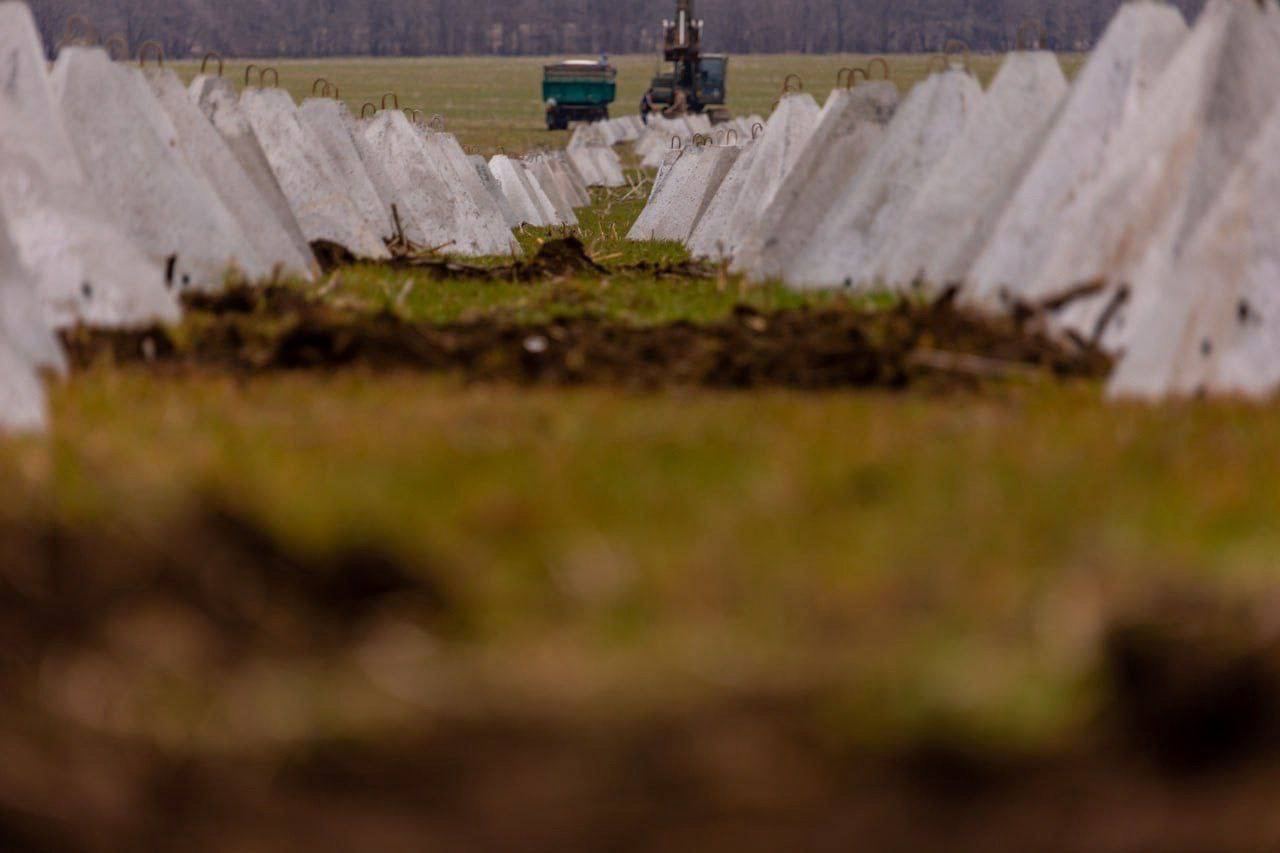 На кадрах строительство оборонительных линий в Днепропетровской области. Согласно заявлению областной военной администрации, выкопано более 42 километров противотанковых рвов и установлено 11 тысяч «пирамид».