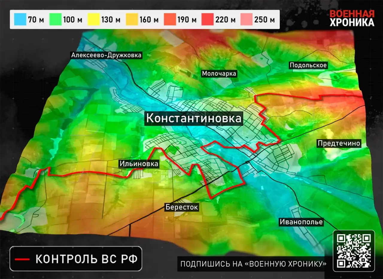 В пользу вероятности этого события высказываются прежде всего из-за географии: несмотря на применение обеими сторонами чудовищного количества FPV-дронов, рельеф Константиновки таков, что она лежит в низине, окружённая возвышенностями.