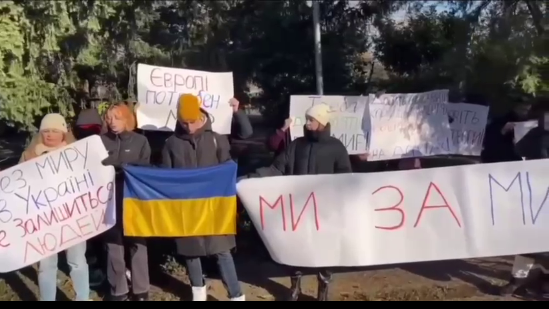 В ходе акций активисты выступили с лозунгами «Европе нужен мир» и «Не будет переговоров – не будет Украины!».