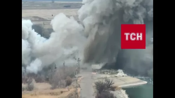 Судя по всему, подрыв на самом деле проводила украинская армия, поскольку в кадре ничего не прилетает и никакого воздействия сверху на сооружение нет в принципе.