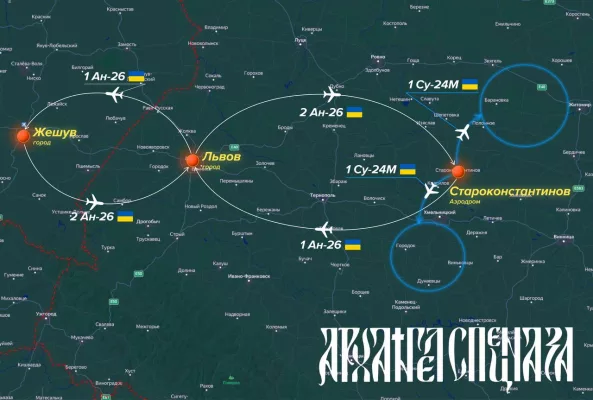 Кроме того, с территории Польши с промежуточной посадкой во Львове на Староконстантинов совершили рейсы туда и обратно транспортные самолёты Ан-26, которые используются украинскими формированиями, в том числе для транспортировки боеприпасов.