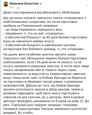 Также Безуглая приводит мнение военного с позывным «Сайгон», который пишет, что украинская армия стала «бесправными крепостными».