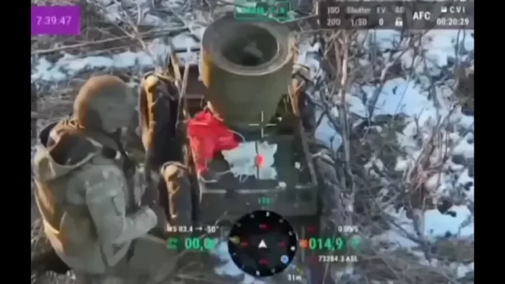 По словам авторов видео, аппарат проехал 4 км и осуществил подрыв под участком дороги в подконтрольном ВС РФ районе.