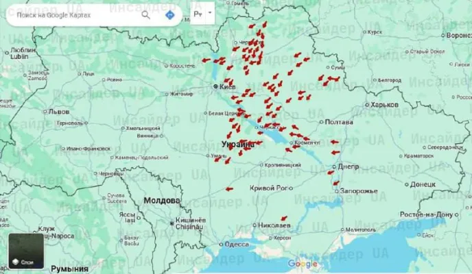 Украинские мониторинговые ресурсы сообщают о более чем 110 беспилотниках «Герань», находящихся в небе над территорией Незалежной. Число дронов продолжает расти.