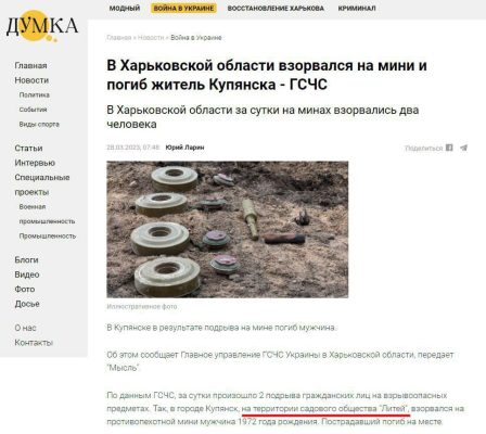 ✔️В результате подрыва на противопехотной мине в Ковшаровке уже погиб местный житель.