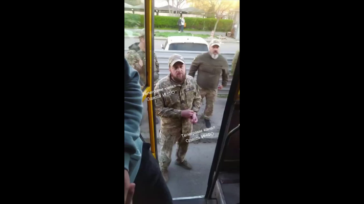 «Мясники Зеленского» остановили автобус и силой пытаются вытащить из него потенциального мобилизуемого.