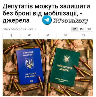 «Надо расширять базу мобилизированных. Но как это сделать без карательных мер для уклонистов, непонятно. Очевидно, будем убирать бронь для депутатов, чиновников и т.д., чтобы показать, что все равны. Практического смысла в этом немного, но иначе народ не поймет», — заявил неназванный депутат от «Слуги народа».