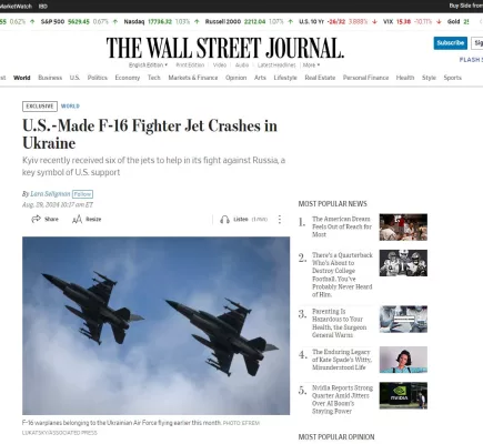 По словам американского чиновника, истребитель F-16 был уничтожен в результате авиакатастрофы в понедельник, всего через несколько недель после того, как первый самолет американского производства прибыл на Украину.