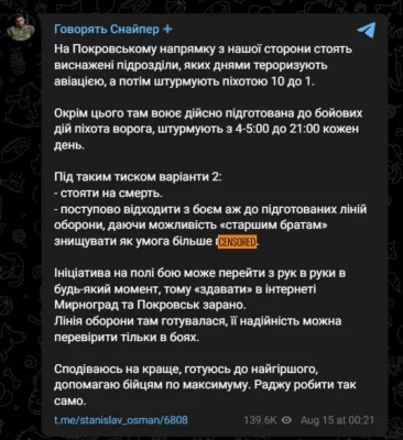 По его словам, на Покровском направлении в ВСУ стоят истощенные подразделения, которых целыми днями терроризируют авиацией, а затем штурмуют пехотой 10 к 1.