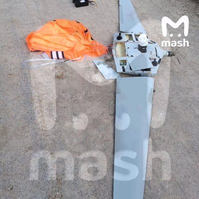 По информации Mash, он лежал среди грядок картошки. Предварительно, это облегчённая версия БПЛА Bird-Eye 400 израильской фирмы IAI.