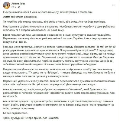 Около месяца назад киевский журналист Артем Ильин ушел служить в ВСУ – теперь он рассказывает о настроениях среди боевиков. И настроения не особенно боевые.