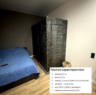 Это стальной шкаф, который устанавливается в квартире или частном доме и во время тревог предлагается в него заходить и прятаться от обстрелов.