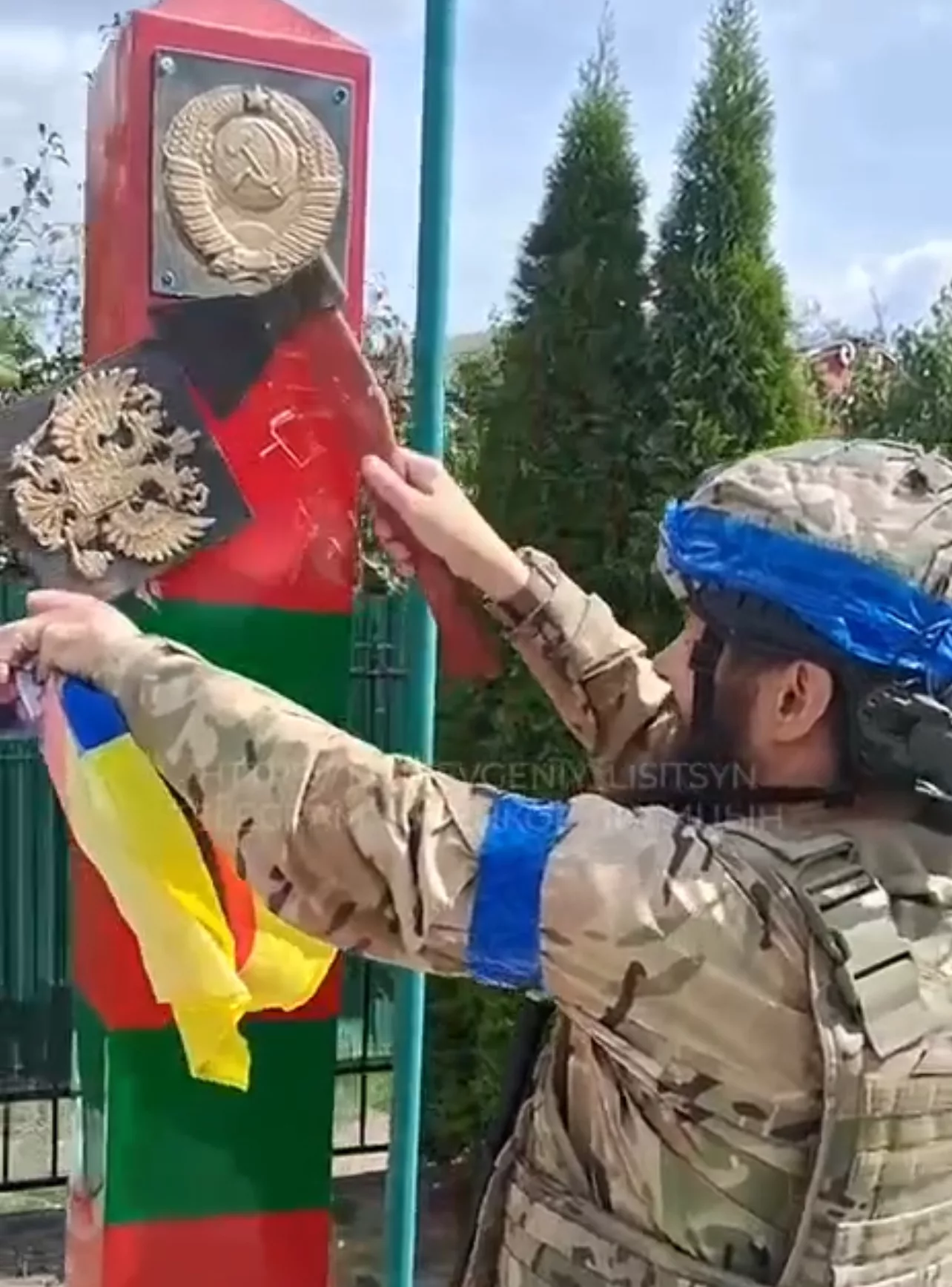 На кадрах ВСУ-шные мрази оскверняют могилы российских пограничников на местном кладбище.