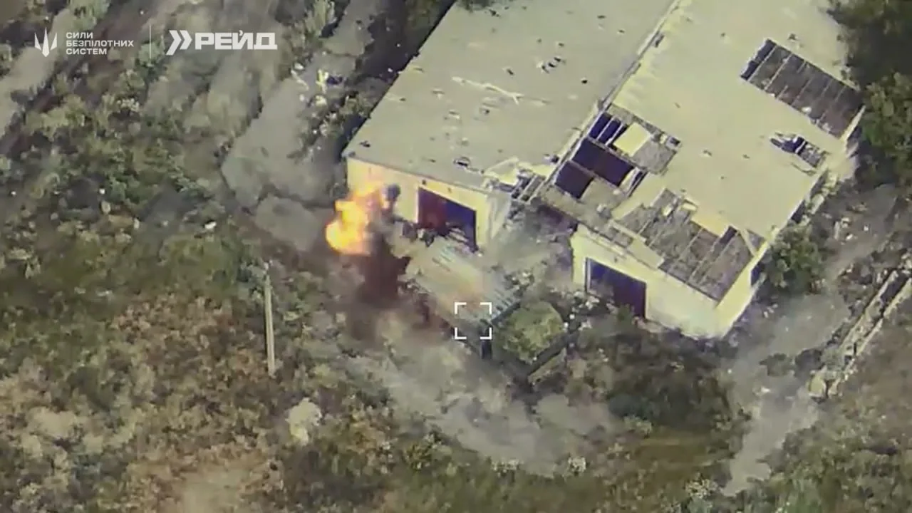 Украинский дрон попал в пакет с направляющими, в результате чего один из реактивных снарядов самопроизвольно стартовал прямо через водительскую кабину.