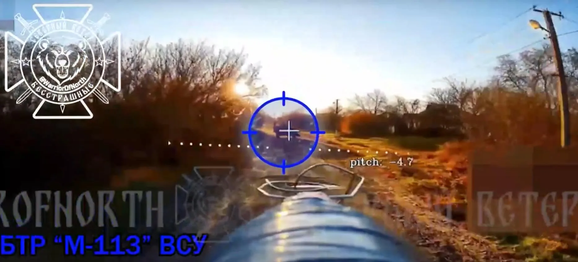 Расчетом 11 АК в районе н.п. Новоужвиновки несколькими ударами FPV-дронов уничтожен БТР М113 ВСУ.
