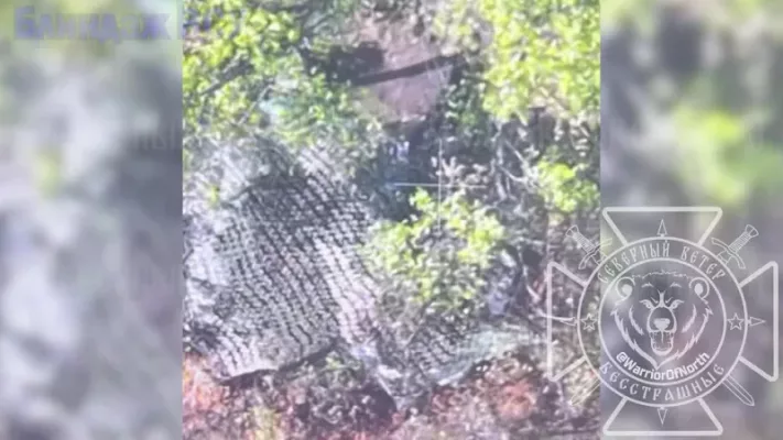 Харьковская область. FPV-дрон группировки «Север» уничтожает вражеский блиндаж с живой силой противника.