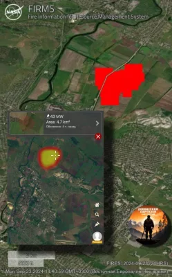 На месте происшествия разгорелся мощный пожар, что подтверждается данными системы мониторинга пожаров Fire Information for Resource Management System (FIRMS), которая зафиксировала тепловую аномалию в указанном районе.