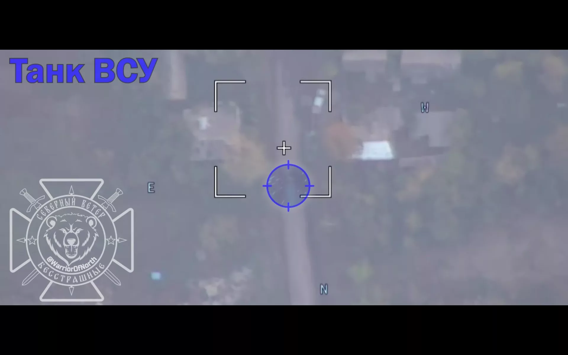 Сумская область. Вражеский танк двигался по центральной улице в н.п. Басовка, обнаружен расчетом «Ланцета» и поражен точным ударом.