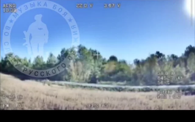 FPV-дрон на оптоволокне медленно подкрался к вражеской САУ и влетел ей прямо в корпус.