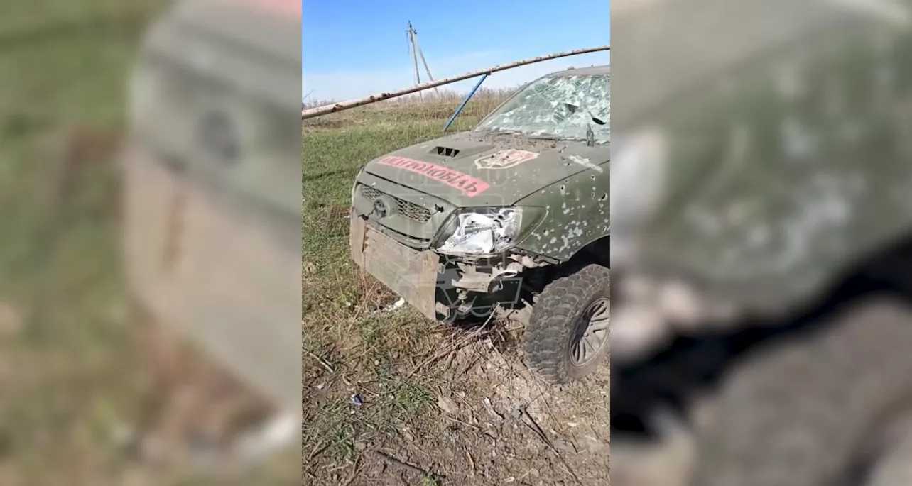 На первом видео уничтоженный нашими бойцами «Бандеромобиль» украинских нацистов.