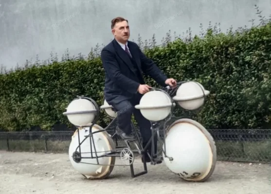 «Цикломер» — это велосипед, который может передвигаться как по земле, так и по воде с грузом до 120 кг. Париж, 1932 год.