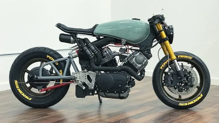 На этот раз Хоган создал для своего давнего друга особенный Yamaha XV750 в стиле cafe Racer. Байк буквально напичкан премиальными компонентами, что сразу бросается в глаза даже искушенному ценителю. Внимание к деталям, продуманная эргономика и гармония линий делают этот мотоцикл по-настоящему выдающимся.