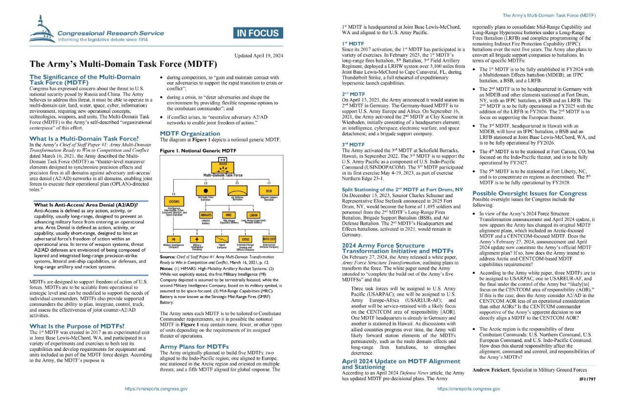 Первую МСОГ развернули на американской базе Льюис-Маккорд в 2018 году для операций в Индо-Тихоокеанском регионе. Две аналогичные группы планируется создать в ближайшие годы, одной из которых станет 2-я МСОГ в Европе. Эти группы оснащены новейшими ракетными комплексами средней и большой дальности SMRF Typhon и LRHW Dark Eagle, что значительно увеличивает их боевые возможности.