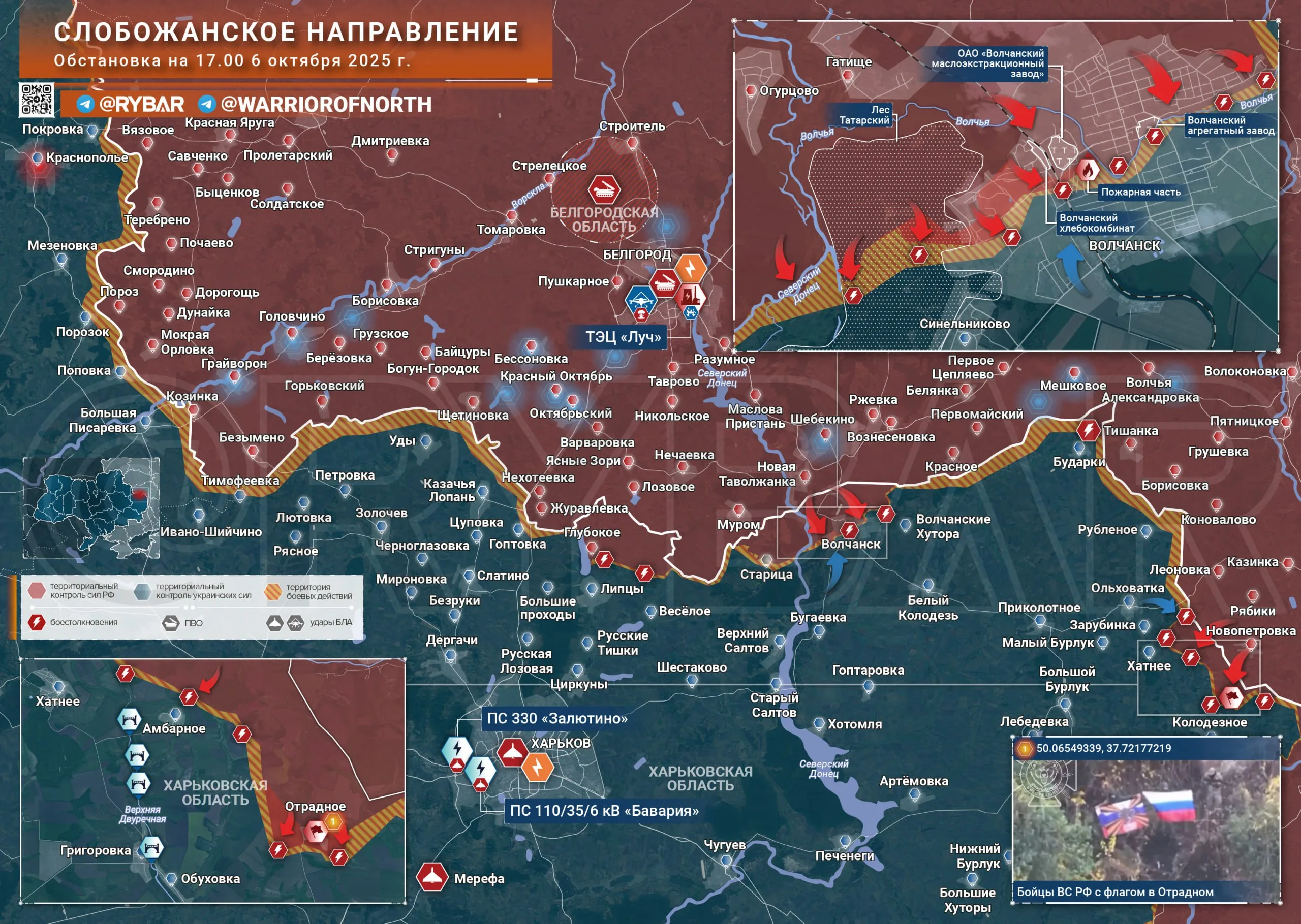 ▪️В пределах городской черты Волчанска подразделения ВС РФ двигаются на юг от промзоны с Волчанским хлебокомбинатом и Маслоэкстракционным заводом, здесь наступление идет малыми штурмовыми группами при поддержке ударов авиации.
