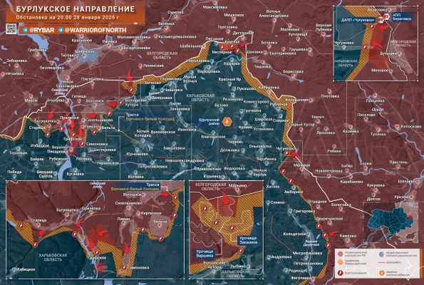 - К востоку от Волчанска, на фоне продолжающихся боёв за Волчанские Хутора, в движение пришёл ещё один небольшой участок границы. Российские штурмовики выдвинулись со стороны Марьино в направлении Зыбино, заняв часть крупных урочищ Вершина и Заказное вдоль границы.
