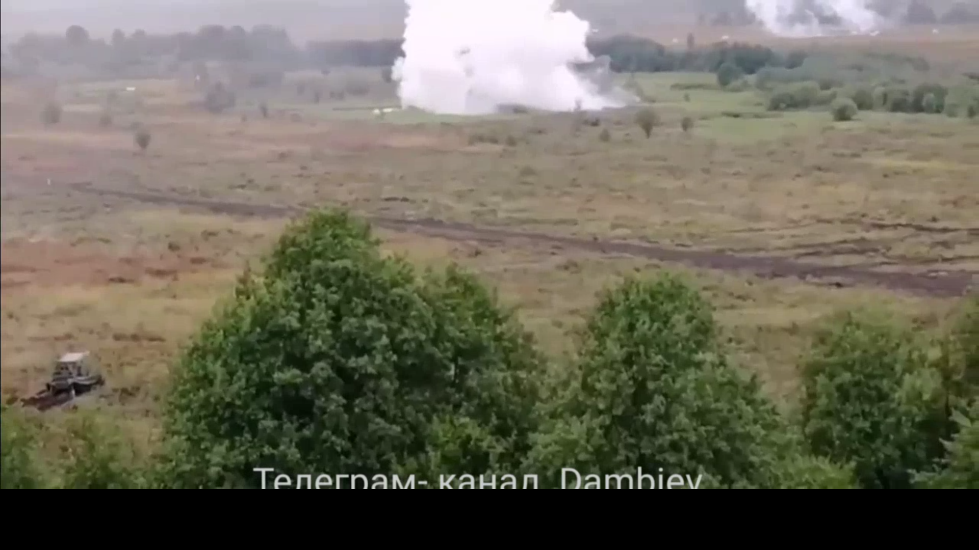 Работает тяжелая огнеметная система ТОС-1А «Солнцепек» подразделения РХБЗ 36 армии ВС РФ.
