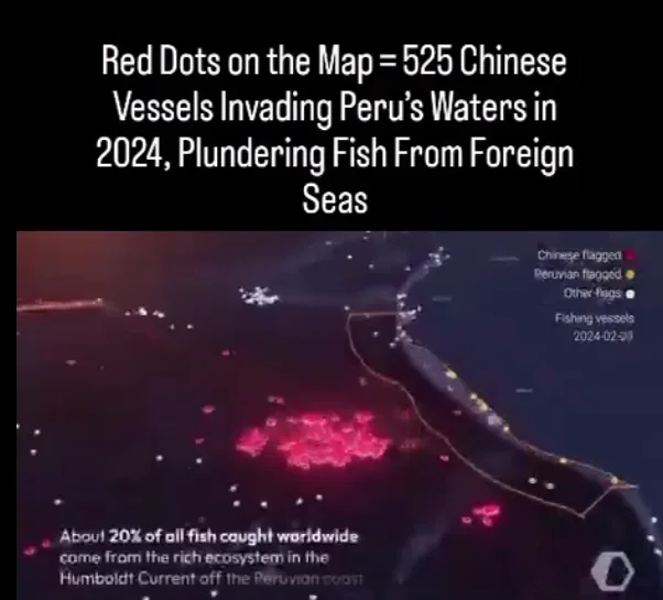 Перуанские рыбаки сообщают о падении улова до 40%, особенно кальмара Гумбольдта, поскольку Китай, оператор крупнейшего в мире флота дальнего плавания, насчитывающего почти 17000 судов, расширяет свою деятельность, истощив собственные биоресурсы.