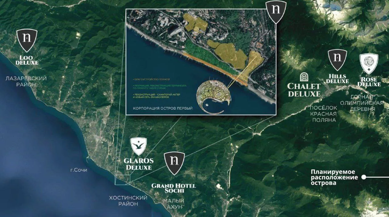 На острове нём разместят апартаменты, гостиницы, спортивные и культурные площадки