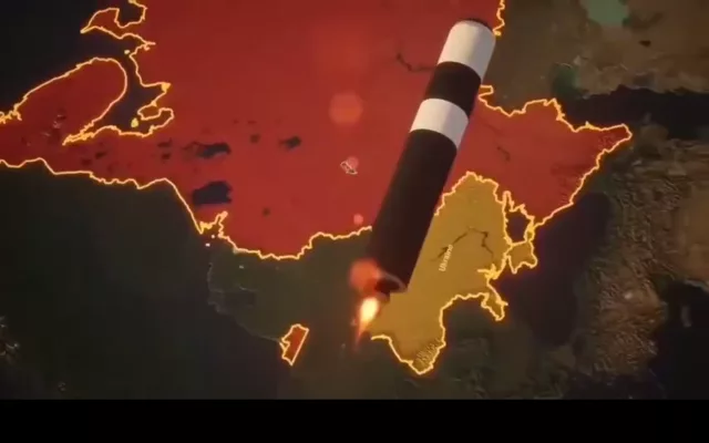 На кадрах утверждается, что ракета «TRIDENT II» уничтожит все живое, в пределах Садового кольца (по их подсчетам это около 2,7 млн чел).