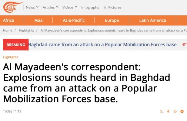 Местные СМИ пишут, что атаку на штаб-квартиру «Аль-Хашд аш-Шааби» провели ВС США.