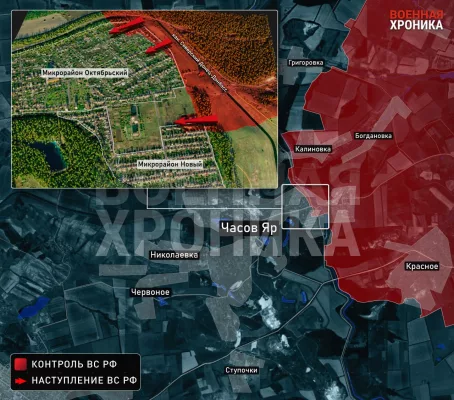 О развитии атаки пока говорить преждевременно, но продвижение имеет место быть. Одновременно фронт двигается и на севере в районе Калиновки, также существенно возросла активность артиллерии с российской стороны. Перед ВСУ постепенно начинает маячить перспектива утери инициативы, за которой последует отход, вероятно, на территорию Часовоярского огнеупорного комбината.