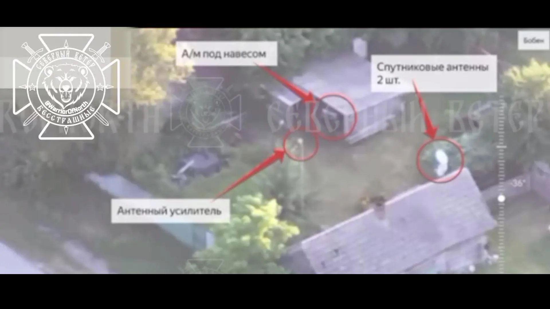 Позиция противника обнаружена в н.п. Железный мост. Возле здания оборудована крытая стоянка для техники. Ударом дрона здание с личным составом ВСУ уничтожено.