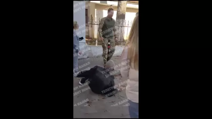 ➖В военкомате отца мобилизованного избили и отправили домой. На видео отчетливо видно, как военком бьет коленом пытающегося встать мужчину.