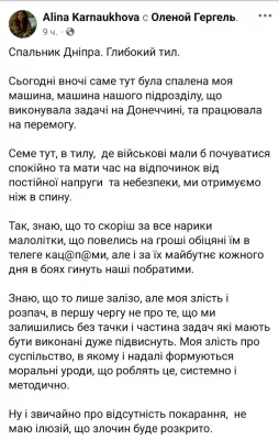 Об этом она сама сообщила в соцсетях. Автомобиль использовался для боевых задач.