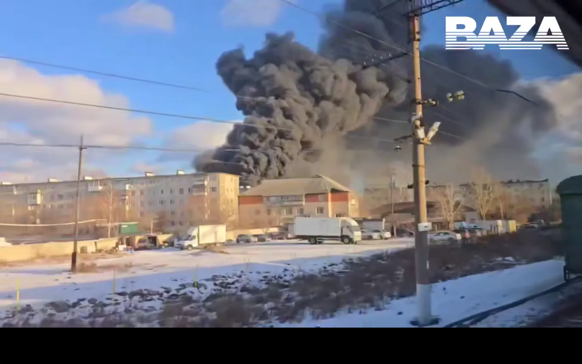 По предварительным данным горит цех по производству полистирола. Площадь пожара составляет полторы тысячи квадратных метров.