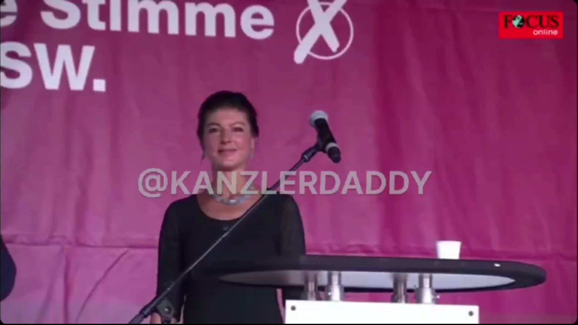 В Эрфурте неизвестный попытался сорвать публичное выступление главы Союза Сары Вагенкнехт: посреди её речи он пробрался к сцене и выплеснул на трибуну некую жидкость красного цвета, сообщает Папочка канцлера. Как утверждают очевидцы, при этом мамкин дизайнер кричал что-то об Украине.