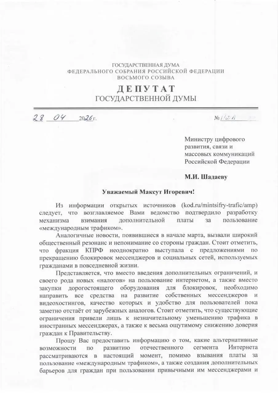 Депутаты предложили инвестировать в развитие отечественных мессенджеров и видеохостингов вместо новых ограничений, отметив, что текущие меры лишь незначительно снизили трафик в иностранных мессенджерах, но подорвали доверие граждан к правительству.