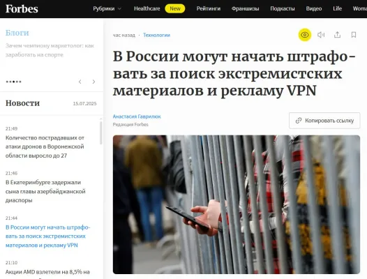 - Любопытно, что поправки о штрафах за поиск экстремистских материалов и рекламу VPN «приписали» к другому закону — о грузоперевозках…
