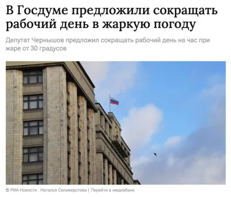Законопроект внес вице-спикер Госдумы РФ Борис Чернышов. Жара стала настоящей угрозой для здоровья: страдают сердце, мозг, концентрация внимания. В Европе последняя жара унесла более 2300 жизней. Сокращенный день — мера точечная, касается отдельных регионов и жарких дней.