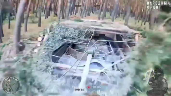 Бандеровцы пытались отбиться от FPV-дронов — на кадре 00:11 заметно попадание из огнестрельного оружия.