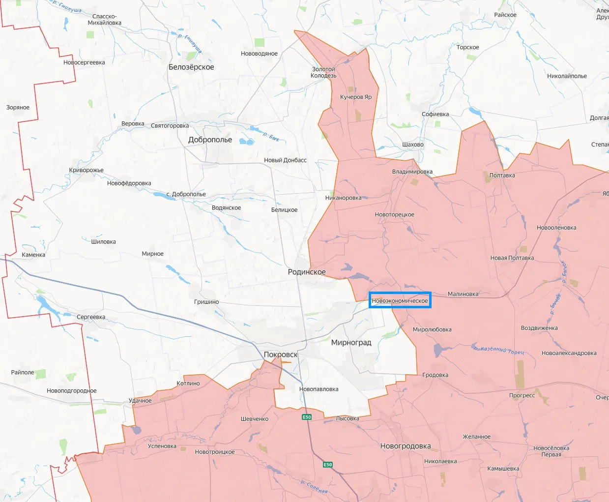 Ранее из-за ударов в сторону села Мирное, находящееся перед ним Новоэкономическое оказалось фактические в серой зоне.
