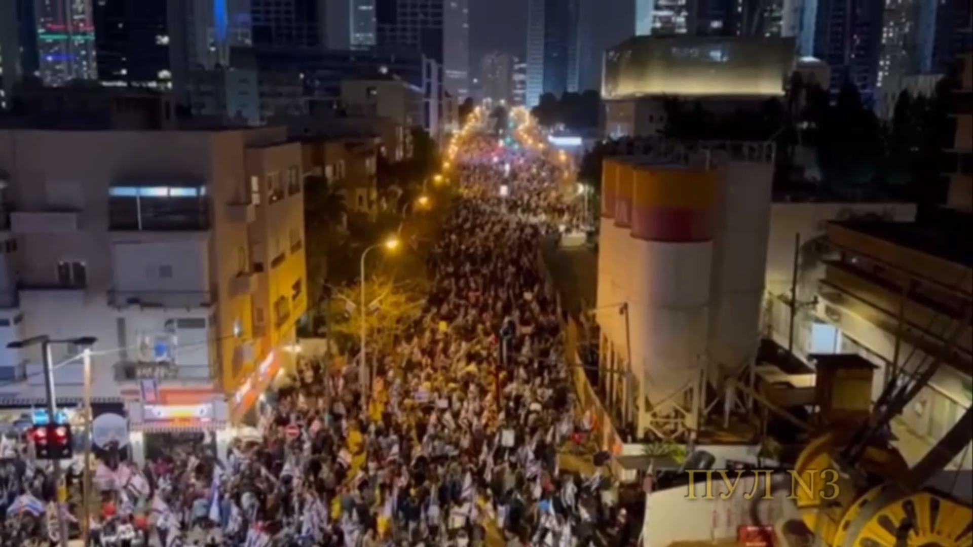 В Тель-Авиве в демонстрации приняли участие около 300 тысяч израильтян. Отмечается, что протестующие перекрыли шоссе Аялон.